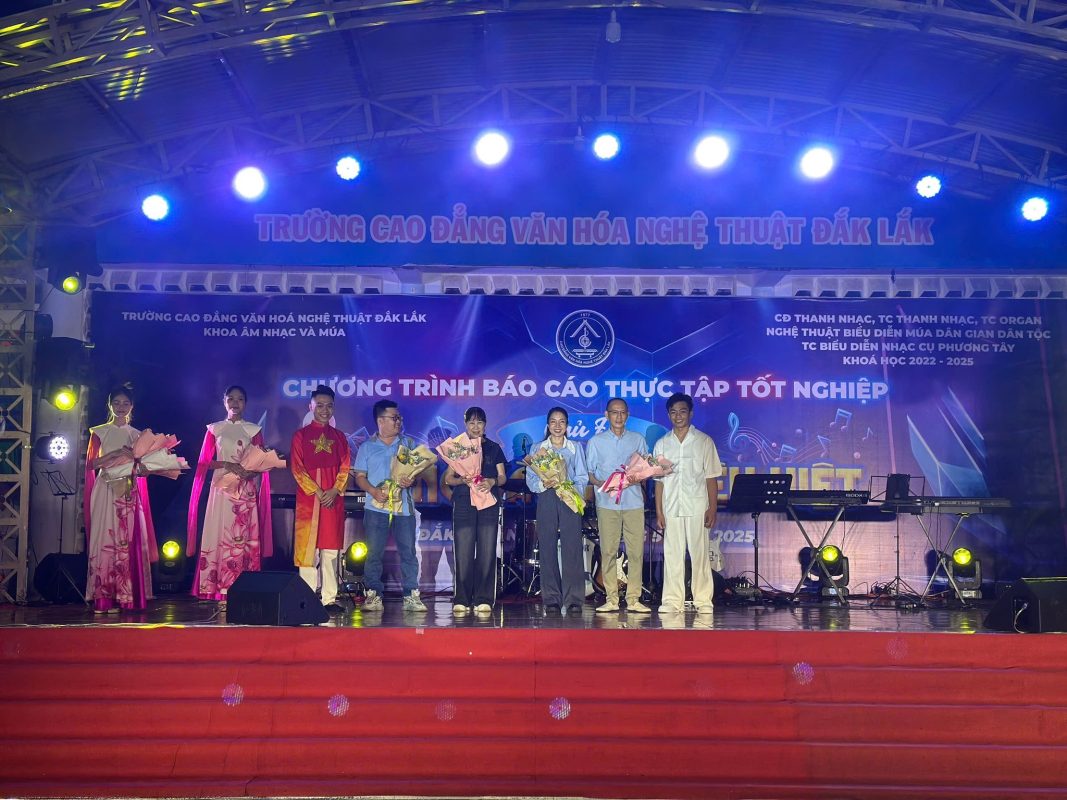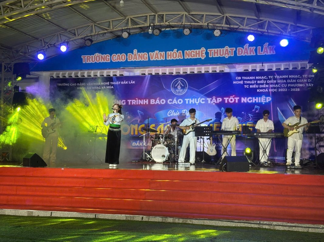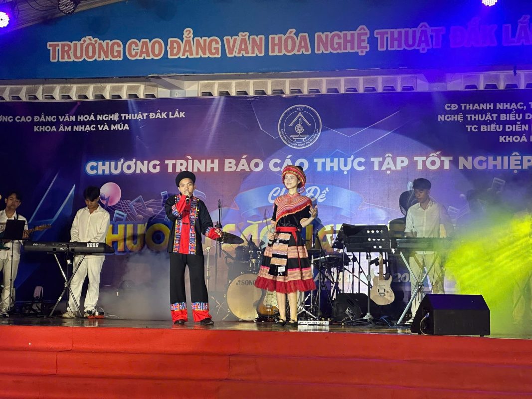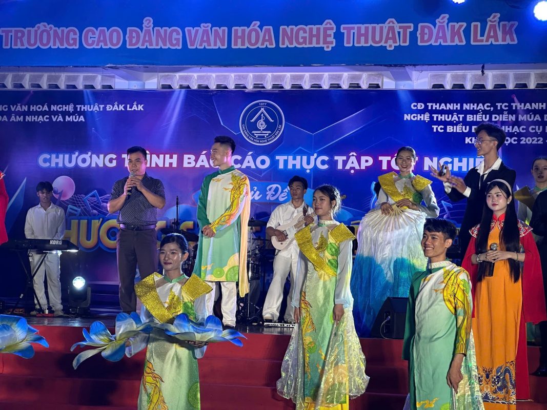 Chương trình báo cáo thực tập tốt nghiệp chủ đề ” HƯƠNG SẮC ĐẠI NGÀN” do các em HSSV các chuyên ngành thuộc Khoa Âm nhạc và Múa, khoá học 2022-2025 biên đạo, thực hành biểu diễn tại sân khấu trường Cao đẳng Văn hoá Nghệ thuật Đắk Lắk