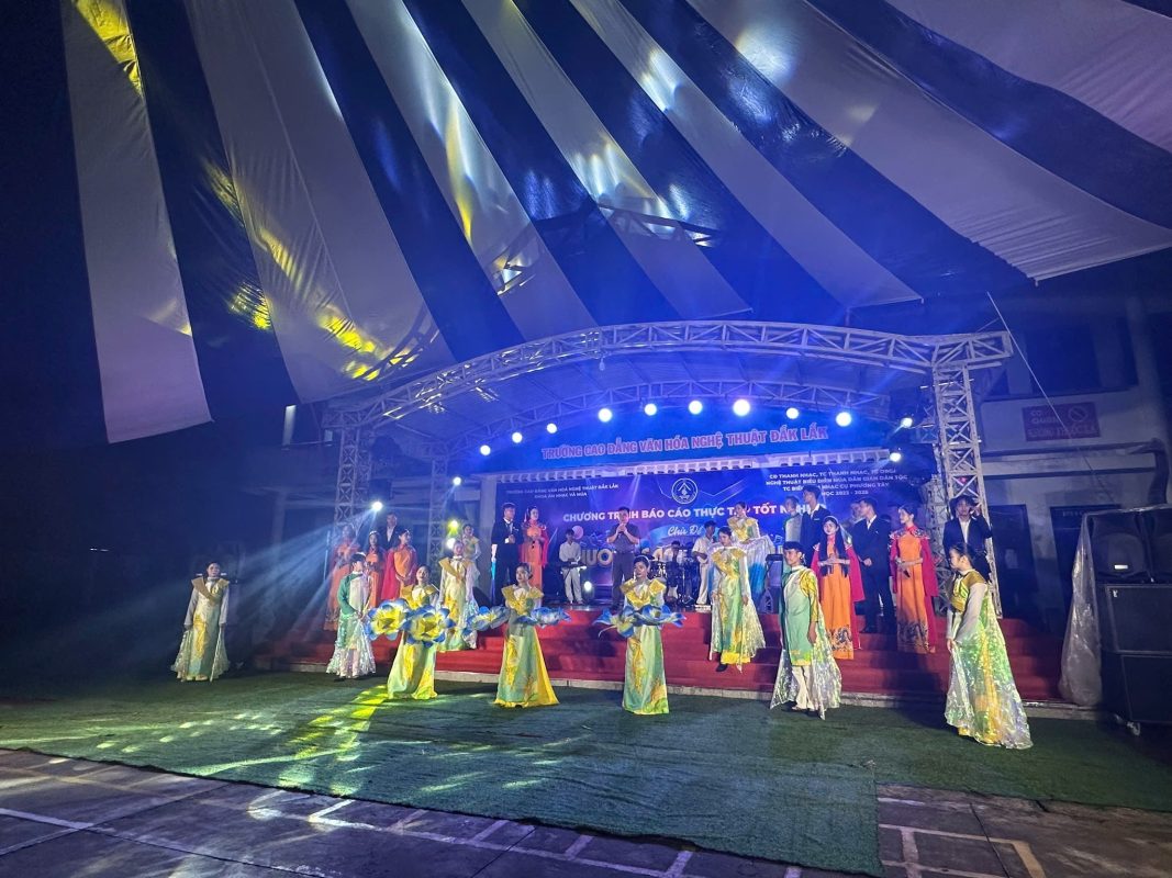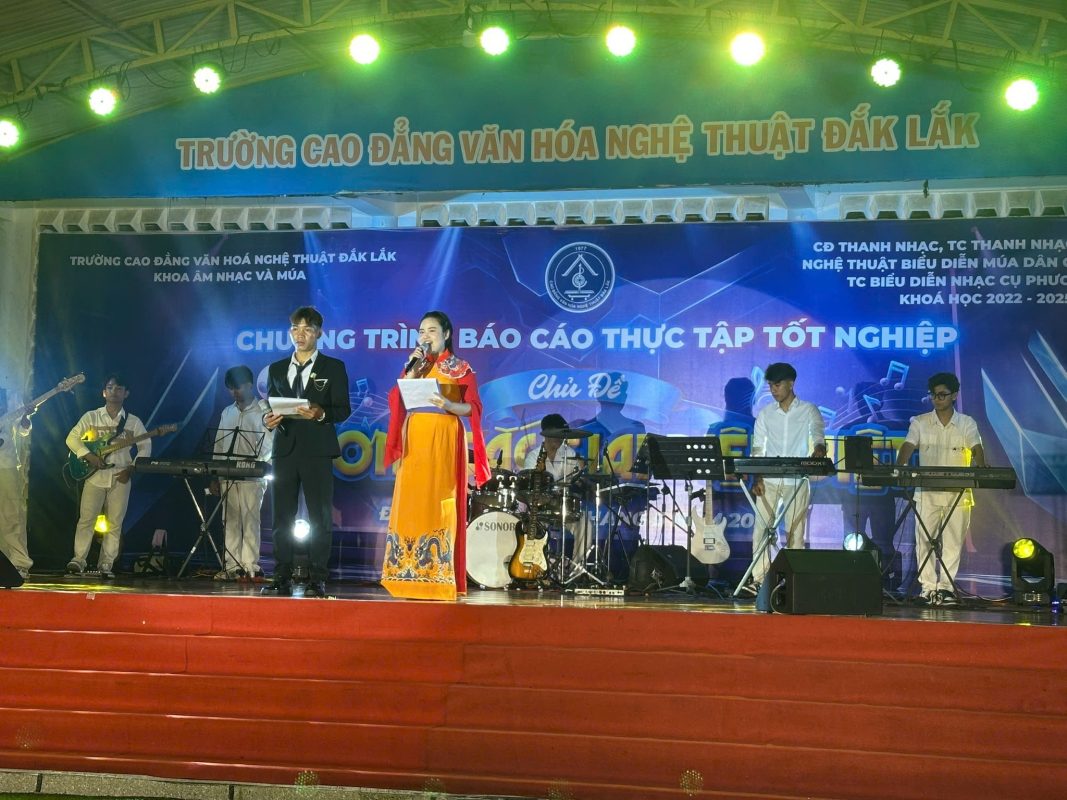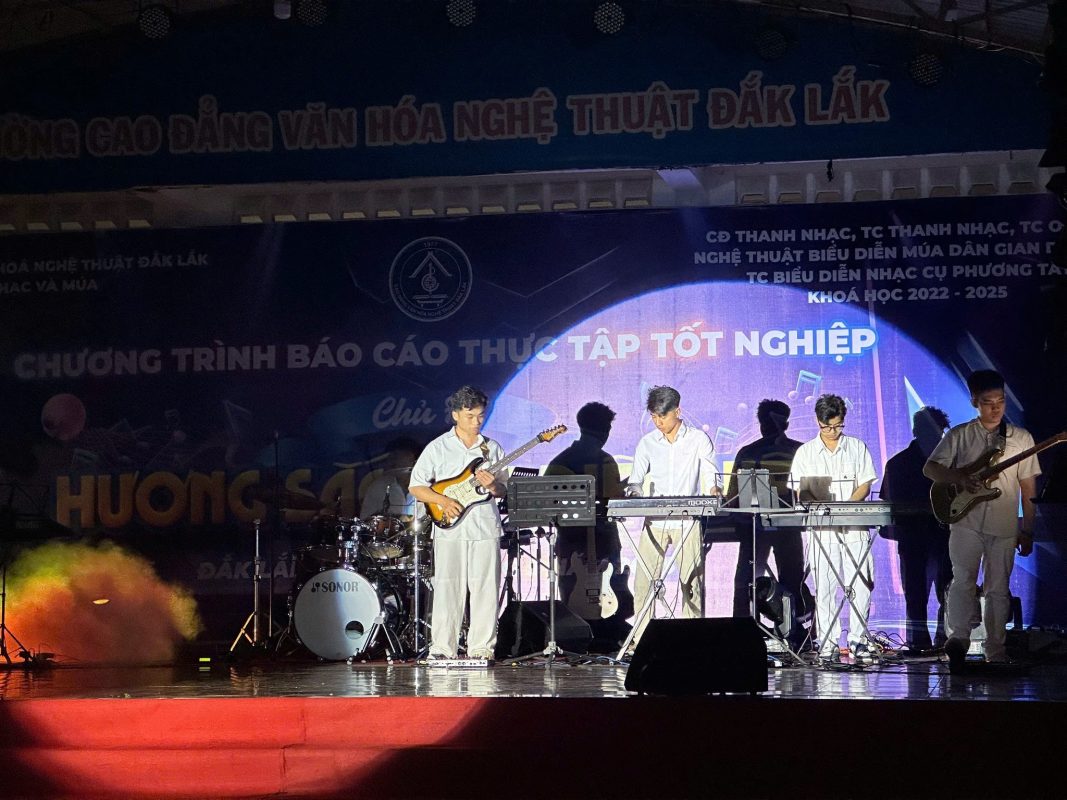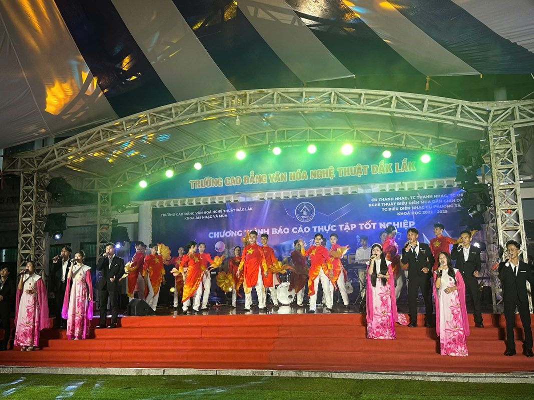 Chương trình báo cáo thực tập tốt nghiệp chủ đề ” HƯƠNG SẮC ĐẠI NGÀN” do các em HSSV các chuyên ngành thuộc Khoa Âm nhạc và Múa, khoá học 2022-2025 biên đạo, thực hành biểu diễn tại sân khấu trường Cao đẳng Văn hoá Nghệ thuật Đắk Lắk